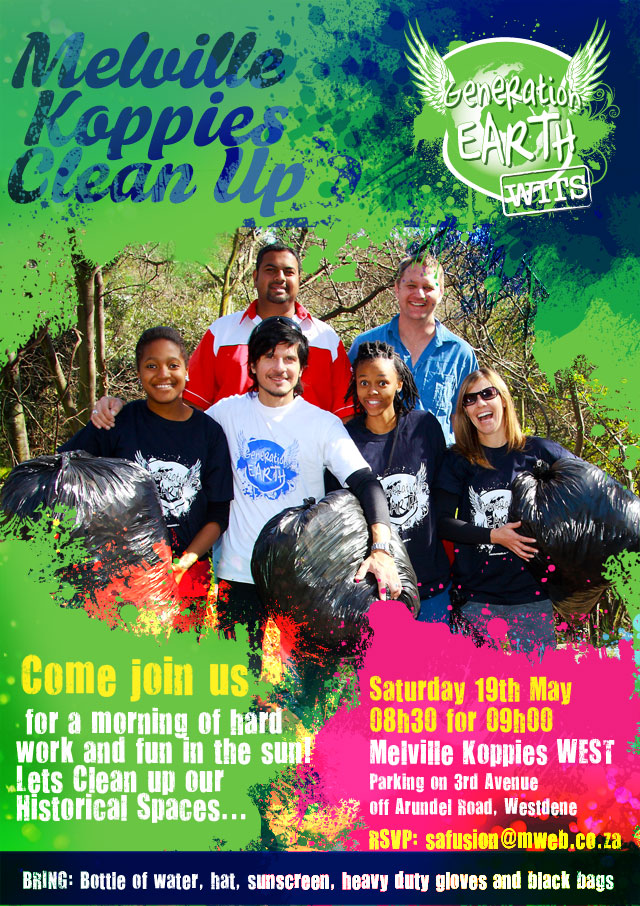 Student Clean Up at Melville Koppies, (a Nature Reserve and Heritage Site in the heart of Johannesburg), in collaboration with Witwatersrand University and Miss Earth South Africa