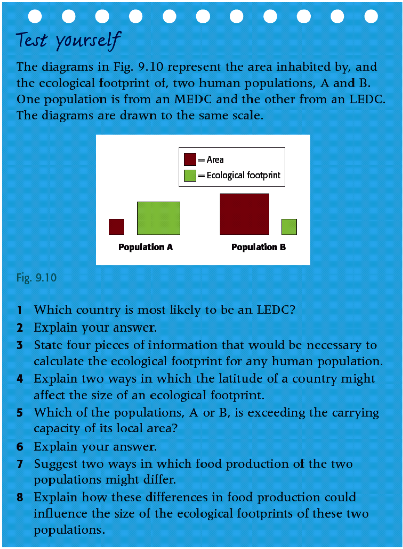 TASK: Describe and explain the differences between the ecological footprints of two human populations, one from an LEDC (choose) and one from an MEDC (Denmark). Here’s a web link to help you get started.